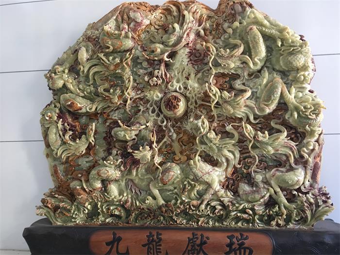 一、拍賣標(biāo)的:九龍獻(xiàn)瑞玉石雕刻擺件一件,長(zhǎng)2.16m,高2m,該玉石雕刻擺件產(chǎn)自臺(tái)灣,器形碩大,氣勢(shì)磅礴,制作細(xì)致,工藝精湛,具有藝術(shù)欣賞價(jià)值和收藏價(jià)值;石獅子一對(duì)。整體拍賣,參考價(jià)7萬(wàn)元。