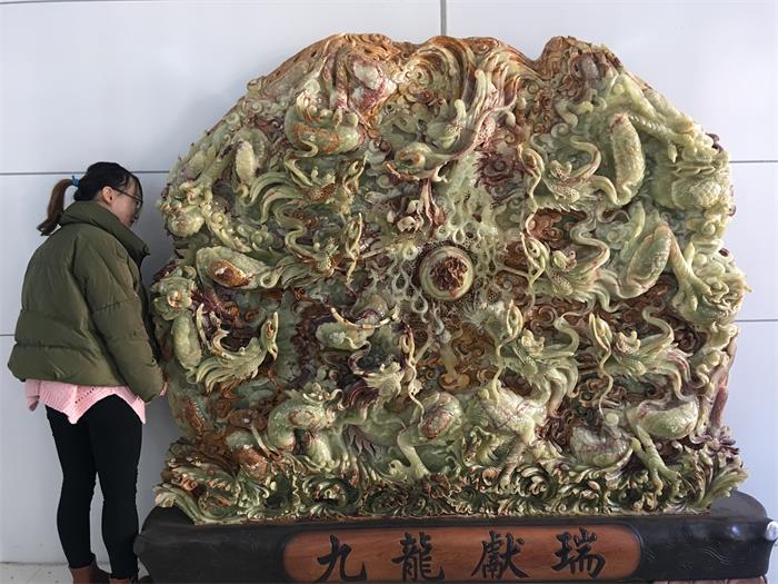 九龍獻(xiàn)瑞玉石雕刻擺件細(xì)節(jié)圖
