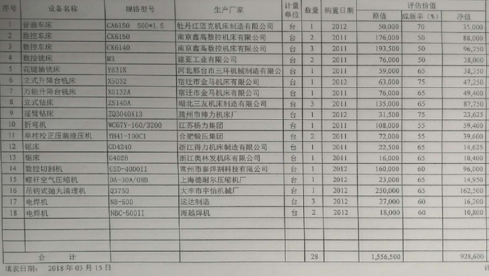 附機器設(shè)備清單: