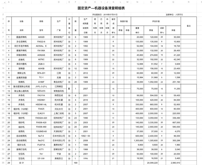 一、拍賣標(biāo)的:自動絡(luò)筒機(jī)、細(xì)紗機(jī)、粗紗機(jī)、梳棉機(jī)、并條機(jī)、成卷機(jī)、雙箱給棉機(jī)、圓盤抓棉機(jī)、豪豬開棉機(jī)、空壓機(jī)等二手紡織設(shè)備及輔機(jī)、容器一批。
