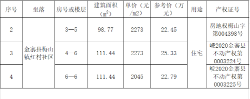 三套住宅房(金寨支行房產(chǎn))拍賣公告