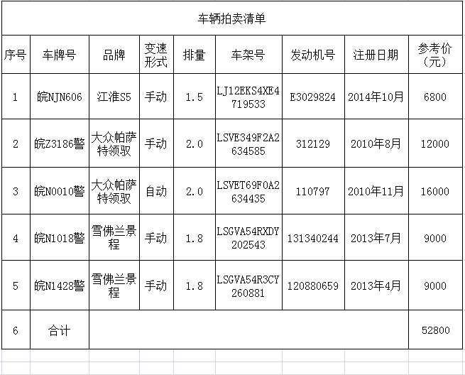 注:車輛按現(xiàn)狀移交,拍賣的所有車輛均不含車牌號。