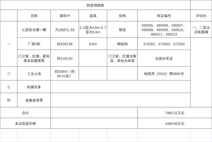 以上標(biāo)的整體拍賣,參考價:4468.98萬元。
