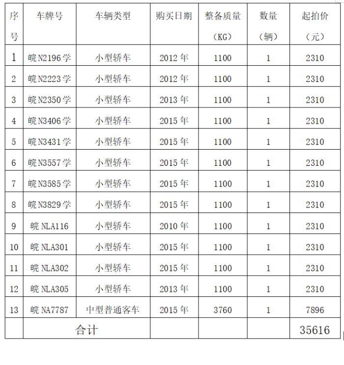 一、 拍賣標(biāo)的:報(bào)廢車輛13輛,打包拍賣,參考價(jià):3.5616萬元。競拍保證金1萬元。標(biāo)的詳情見下方清單: