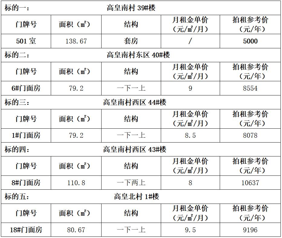 一、拍租標(biāo)的:六安市裕安區(qū)平橋工業(yè)園高皇南、北村安置小區(qū)住宅及門面房3年期租賃經(jīng)營權(quán),詳情見下表