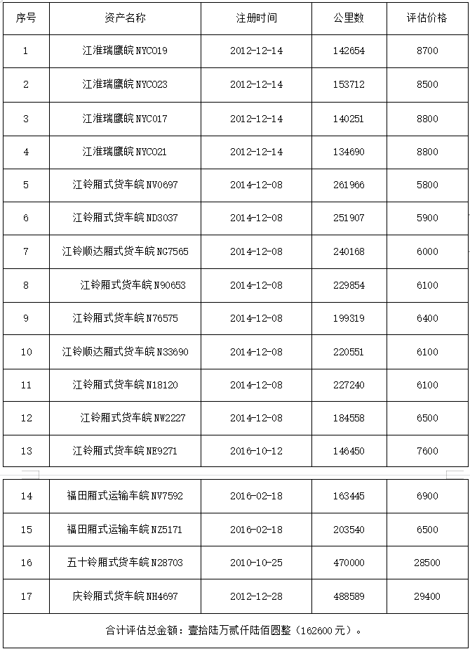 一、拍賣標(biāo)的:二手車17輛,打包拍賣,整體參考價16.26萬元。競買保證金3萬元。標(biāo)的詳情見下方清單: