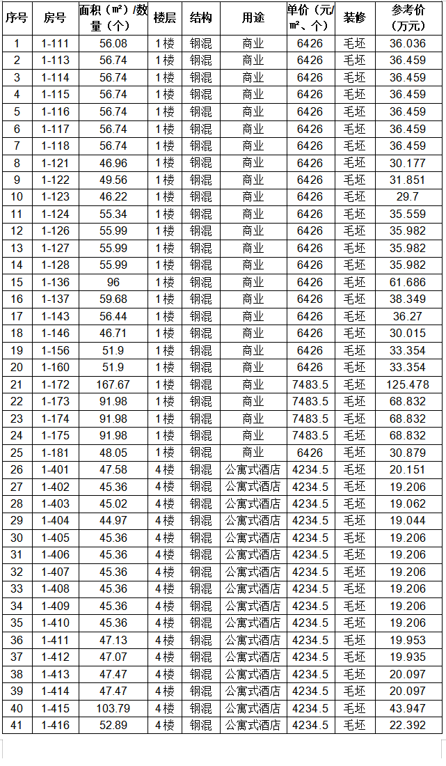 一、拍賣(mài)標(biāo)的:位于六安市金寨縣梅山鎮(zhèn)新城區(qū)紅石谷路以南、江天路以北,金寨智慧萬(wàn)匯廣場(chǎng)1、2、3、4號(hào)樓304套房屋及124個(gè)地下車(chē)位,整體打包拍賣(mài)。參考價(jià):9496.233萬(wàn)元。保證金:900萬(wàn)元。標(biāo)的詳情詳見(jiàn)以下標(biāo)的物清單: