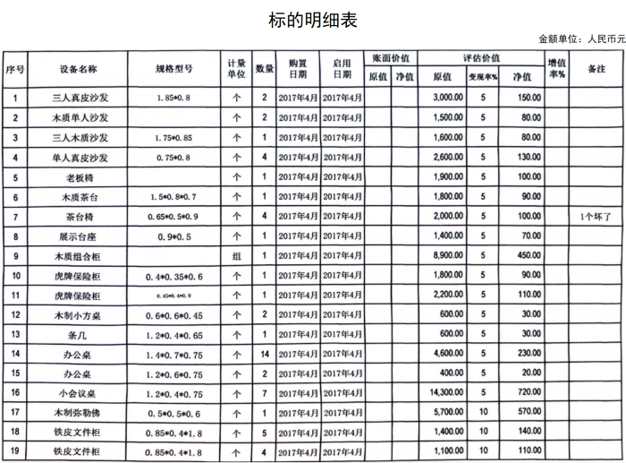標(biāo)的詳情見所附清單(清單僅供參考,若與實(shí)物不符以實(shí)物看樣為準(zhǔn))。