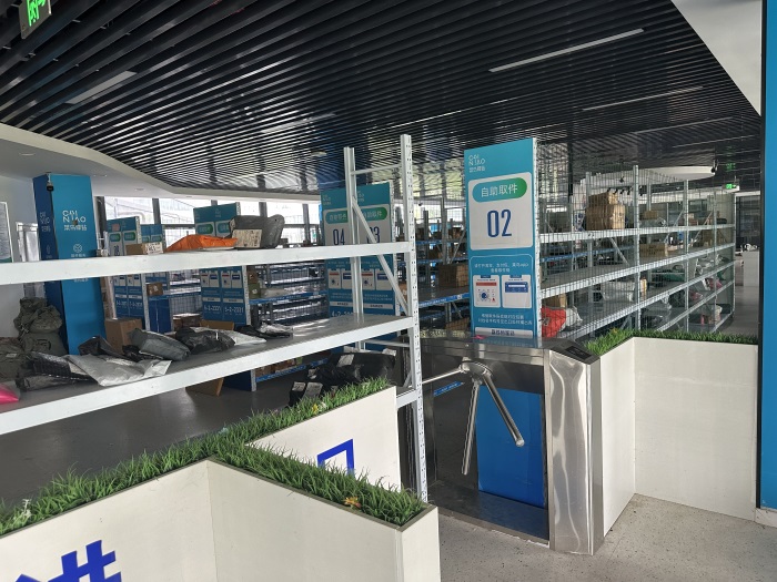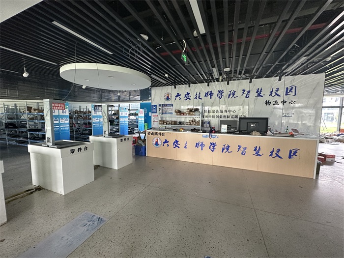 安徽六安技師學(xué)院佛子嶺路校區(qū)商貿(mào)樓物流實(shí)訓(xùn)室一樓快遞驛站↑