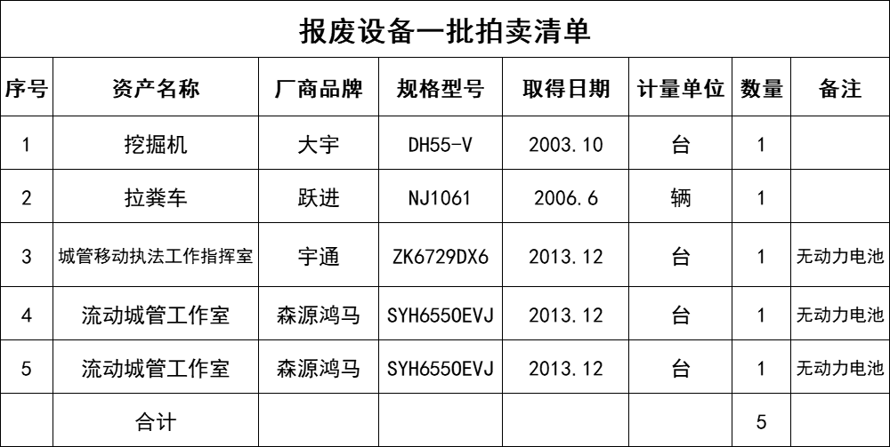 特別提示:由于標(biāo)的是報(bào)廢物品,可能存在部件損失、不全以及規(guī)格型號(hào)不匹配等情況,現(xiàn)場(chǎng)數(shù)量與清單可能有差異,清單不作為交付依據(jù),以實(shí)物看樣為準(zhǔn),以現(xiàn)場(chǎng)實(shí)物移交。