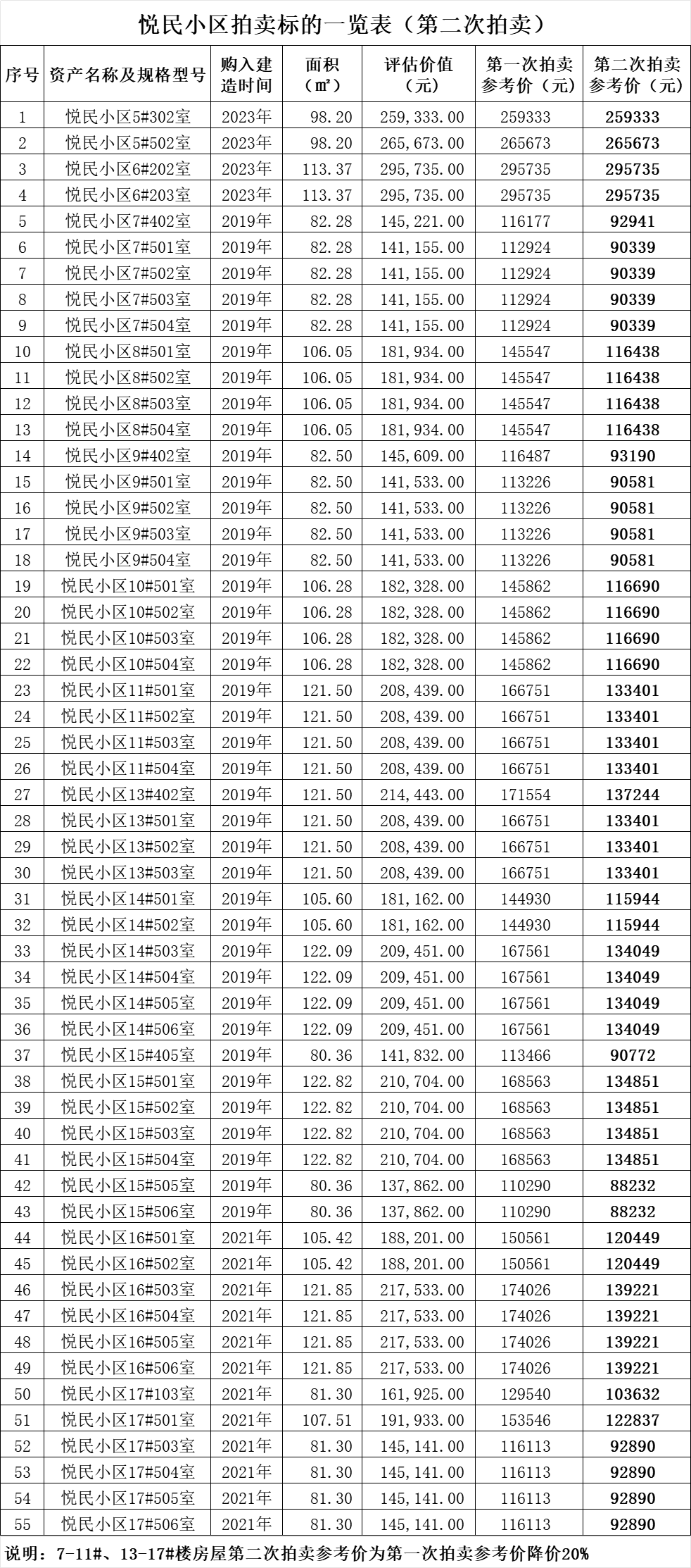1、2025年1月24日15時拍賣:佛子嶺鎮(zhèn)悅民小區(qū)房產55套,總建筑面積約5713平方米,土地性質為國有劃撥土地,本次拍賣不含土地。(詳情及拍賣參考價等見下方附表↓)