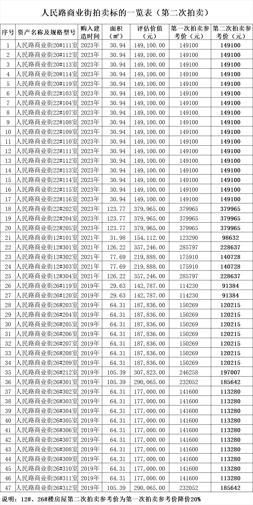 2、2025年1月24日15時30分拍賣:佛子嶺鎮(zhèn)人民路商業(yè)街房產47套,總建筑面積約2806平方米,土地性質為國有劃撥土地,本次拍賣不含土地。(詳情及拍賣參考價等見下方附表↓)