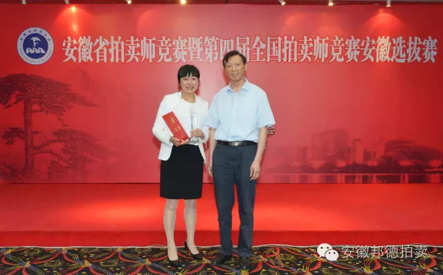 6月25日,安徽省拍賣協(xié)會舉辦的“安徽省拍賣師競賽暨第四屆全國拍賣師競賽安徽選拔賽”在合肥奧體中心圓滿落下了帷幕。我公司總經(jīng)理、國家注冊拍賣師陳曉梅榮獲銅槌獎(jiǎng)。拍賣師大賽每五年一屆,今年是第四屆?上驳氖桥馁u師陳曉梅在上一屆的比賽中也是獲得了銅槌獎(jiǎng)。